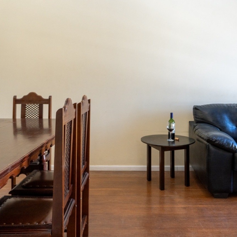 Sala de estar integrada à sala de jantar, garantindo amplitude e aconchego
